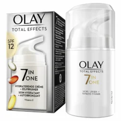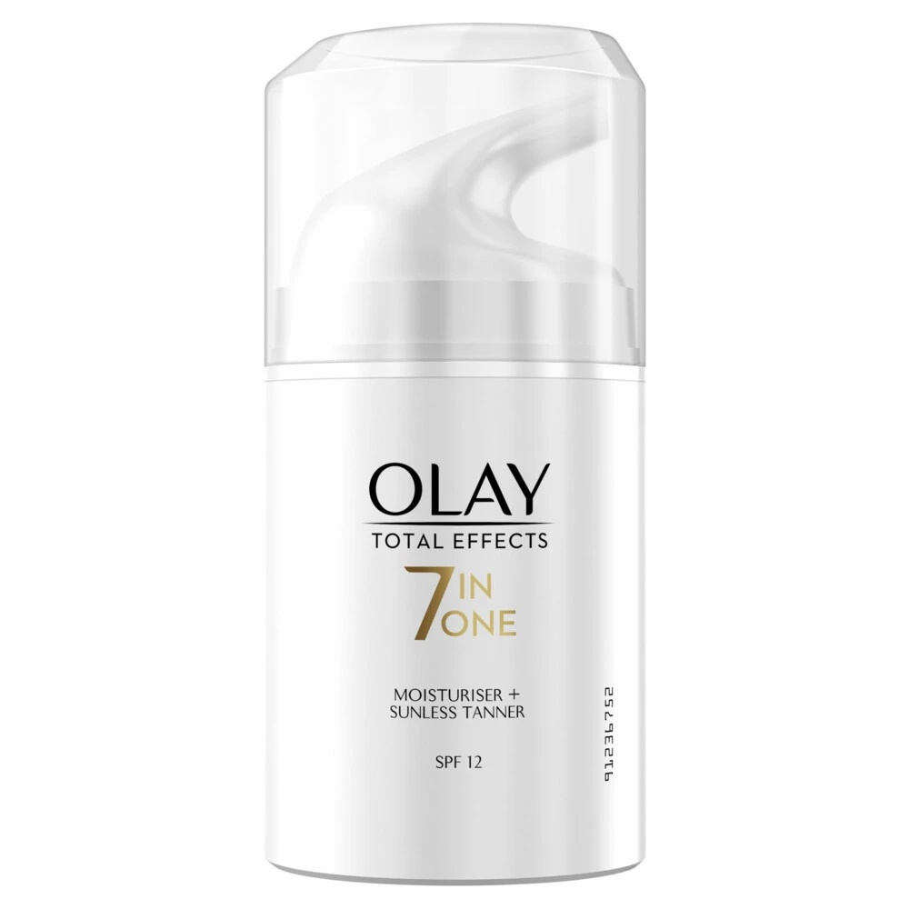 Olay Total Effects 7in1 Hydraterende Dagcrème En Zelfbruiner Met SPF12Een licht gebruinde en gezond uitziende huid in één stap De Olay Total Effects hydraterende dagcrème met meervoudige werking en zelfbruiner biedt je huid 7 voordelen in één stap en een gelijkmatige, zonnige gloed. De formule van Olay Total Effects, versterkt met vitamine E, verbetert de hydratatie en vernieuwing van het huidoppervlak.Het levert 7 voordelen in één stap: ze