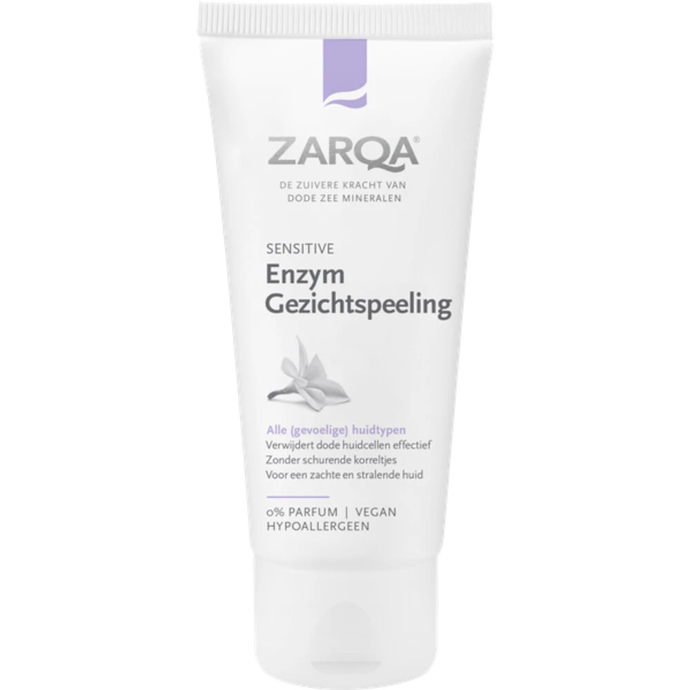 Zarqa Enzym Gezichtspeeling Ultra SoftZarqa Enzym Gezichtspeeling verwijdert dode huidcellen zonder schurende scrubkorreltjes. De werkzame enzymen en papaja-extracten maken de huid op milde wijze glad en zacht, terwijl shea butter verzacht en voedt. Na de peeling zijn de poriën fijner, voelt de huid zijdezacht en worden werkzame stoffen uit crèmes beter opgenomen. Geschikt voor alle huidtypen, zelfs de meest gevoelige.Verwijdert dode huidcellen effectiefZonder schurende korreltjesVoo